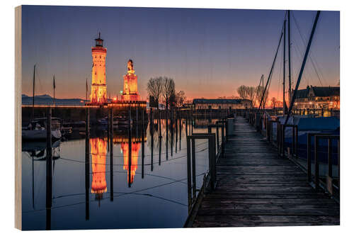 Posterlounge   Cuadros   Azul   Achim Thomae   Cuadro de madera Sunset in Lindau on Lake Constance
