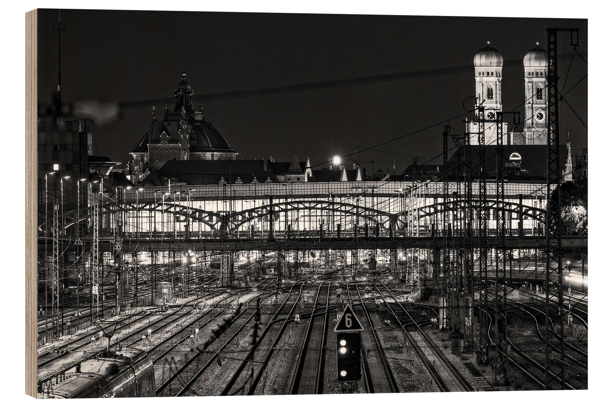 Posterlounge   Cuadros   Blanco y negro   Achim Thomae   Cuadro de madera Munich Central Station and Frauenkirche